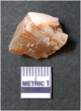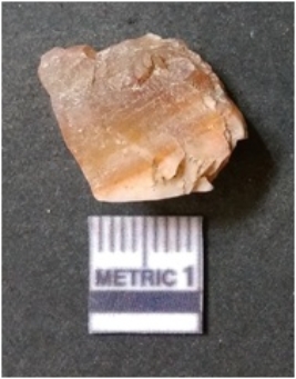 | Description / विवरण | The lithic piece is a detached piece from the core and the flat surface with flake scars is evident as the result of core reduction process. Some part of cortex is visible on the surface. |
