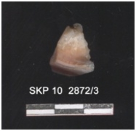 | Description / विवरण | Lithic debitage on agate, the ridges, and striking platform can be seen and also the bulb of percussion can be seen. The sides are retouched. |