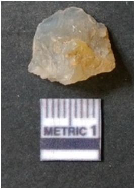 | Description / विवरण | It is chalcedony flake, translucent in appearance. The piece shows sharp pointed ends and flake scars on the surface as a result of flaking. The piece shows a bulb of percussion. |