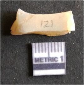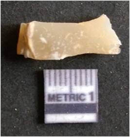 | Description / विवरण | It is chalcedony flake, translucent in appearance. The piece shows sharp pointed ends and flake scars on the surface as a result of flaking. The piece shows a bulb of percussion. |