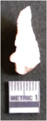 | Description / विवरण | The milky quartz flake has sharp flaked edges and pointed ends as a result of flaking. The piece is semi-transparent in nature with irregular fracture pattern. The piece is roughly triangular in shape and has a prominent bulb of percussion. |