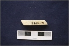 | Description / विवरण | Fragment of shell circlet has rectangular cross-section and medium polished. |