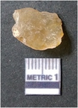 | Description / विवरण | It is chalcedony flake, translucent in appearance. The piece shows sharp pointed ends and flake scars on the surface as a result of flaking. The piece shows a bulb of percussion. |