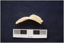 | Description / विवरण | Fragment of shell circlet has rough rectangular cross-section partly broken exterior and medium polished. |
