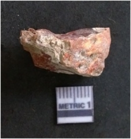 | Description / विवरण | The carnelian flake is red in colour, with angular flaked edges and a bulbous end. The piece has sharp pointed end and a crypto-crystalline matrix. The piece is reddish in colour; with silica base. |
