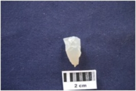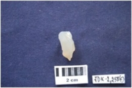 | Description / विवरण | A chalcedony core fragment with prepared platform along one end and flake scars on the surface. |
