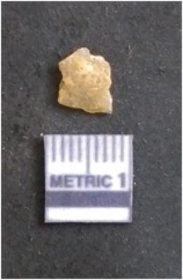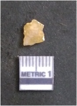 | Description / विवरण | The chalcedony flake is pale in colour and translucent in appearance. The piece has s harp flaked ends and a bulbous end due to flaking. The flake has a crypto-crystalline silica matrix. |
