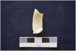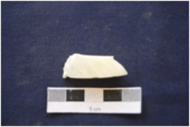 | Description / विवरण | Fragment of shell circlet has rough rectangular cross-section and glossy surface. |