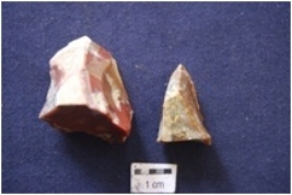 | Description / विवरण | 2 Chert Cores with bladescars, prepared platform along one end. |
