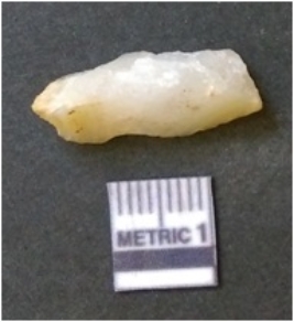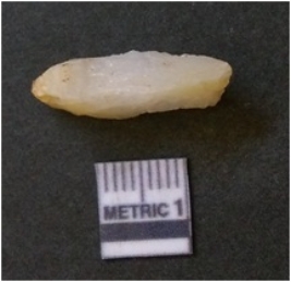 | Description / विवरण | The quartz flake is elongated with both the ends tapering and flaked edges with flake scars. |