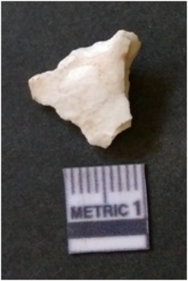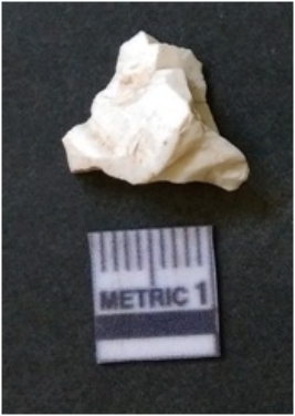 | Description / विवरण | The milky quartz flake has irregular fracture pattern and sharp flaked edges as a result of lithic knapping activity. The piece is pale, with surfacial flake scars and a bulbous end. The flake is white in color. |