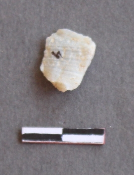 | Description / विवरण | It is a quartz fragment, with a striking platform. There are many flake scars with ripples on it. |