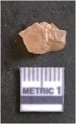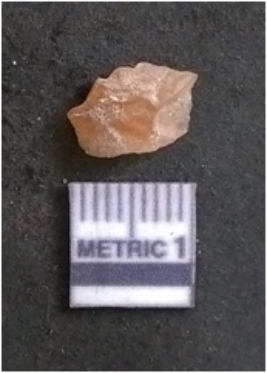 | Description / विवरण | The chalcedony flake is pale in colour and translucent in appearance. The piece has s harp flaked ends and a bulbous end due to flaking. The flake has a crypto-crystalline silica matrix. |