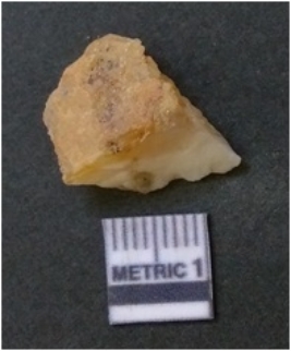 | Description / विवरण | It is chalcedony flake, translucent in appearance. The piece shows sharp pointed ends and flake scars on the surface as a result of flaking. The piece shows a bulb of percussion. |