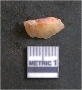 | Description / विवरण | The chalcedony flake is pale in colour and translucent in appearance. The piece has s harp flaked ends and a bulbous end due to flaking. The flake has a crypto-crystalline silica matrix. |