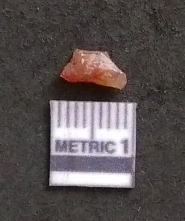| Description / विवरण | It is a carnelian flake, with a striking platform with bulb of percussion on the ventral side. It is orangish in color, flake edges on the surface with ripple on it due to heavy percussion. |
