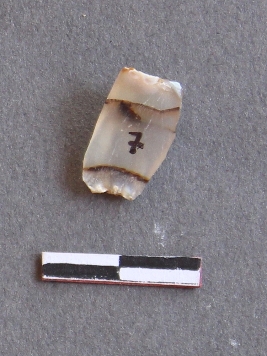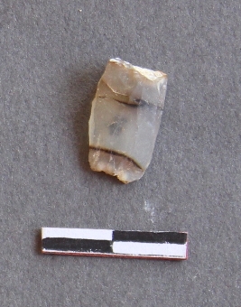 | Description / विवरण | It is a quartz fragment. Very cryptocrystalline. Flakes scar on the surface with ripples on it. |
