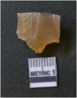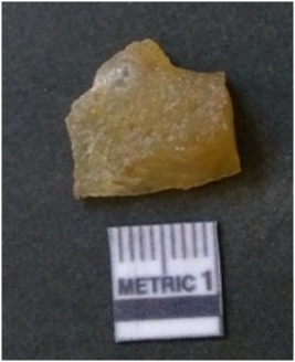 | Description / विवरण | It is chalcedony flake, translucent in appearance. The piece shows sharp pointed ends and flake scars on the surface as a result of flaking. The piece shows a bulb of percussion. |