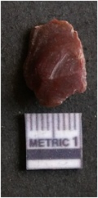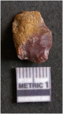 | Description / विवरण | The chert piece is dark in color, with a prominent bulb of percussion and sharp flaked edges. The piece is a part of lithic debitage or raw material for lithic knapping. The piece shows clear ripple marks and bulb of percussion. |