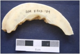 | Description / विवरण | A piece of shell bangle manufacturing waste. |