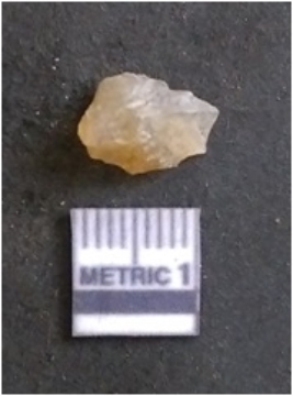 | Description / विवरण | The chalcedony flake is pale in colour and translucent in appearance. The piece has s harp flaked ends and a bulbous end due to flaking. The flake has a crypto-crystalline silica matrix. |