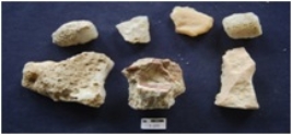 | Description / विवरण | Chalcedony, Chert and Agate nodule with flakescars, byproduct of stone tool manufacturing, a few have prepared platform along one end. |