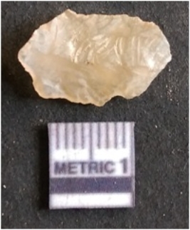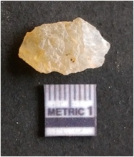 | Description / विवरण | It is chalcedony flake, translucent in appearance. The piece shows sharp pointed ends and flake scars on the surface as a result of flaking. The piece shows a bulb of percussion. |