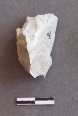 | Description / विवरण | It is a chert fragment, with a striking platform, cortex on one end; there are many flake scars with ripples on it. |