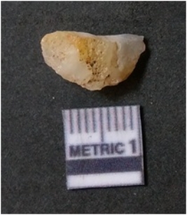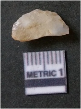 | Description / विवरण | It is chalcedony flake, translucent in appearance. The piece shows sharp pointed ends and flake scars on the surface as a result of flaking. The piece shows a bulb of percussion. |