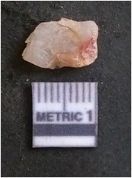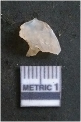 | Description / विवरण | The chalcedony flake is pale in colour and translucent in appearance. The piece has s harp flaked ends and a bulbous end due to flaking. The flake has a crypto-crystalline silica matrix. |