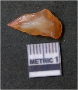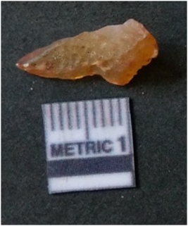 | Description / विवरण | It is chalcedony flake, translucent in appearance. The piece shows sharp pointed ends and flake scars on the surface as a result of flaking. The piece shows a bulb of percussion. |