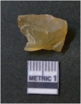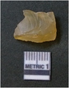 | Description / विवरण | It is chalcedony flake, translucent in appearance. The piece shows sharp pointed ends and flake scars on the surface as a result of flaking. The piece shows a bulb of percussion. |