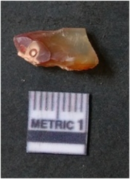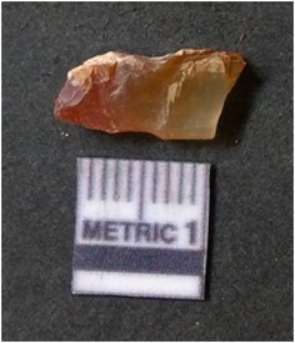 | Description / विवरण | It is chalcedony flake, translucent in appearance. The piece shows sharp pointed ends and flake scars on the surface as a result of flaking. The piece shows a bulb of percussion. |