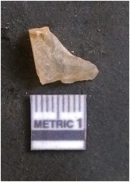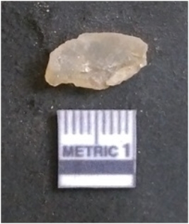 | Description / विवरण | The chalcedony flake is pale in colour and translucent in appearance. The piece has s harp flaked ends and a bulbous end due to flaking. The flake has a crypto-crystalline silica matrix. |