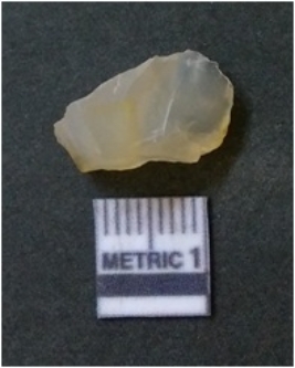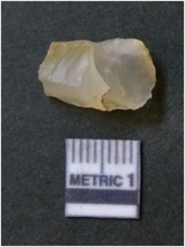 | Description / विवरण | It is chalcedony flake, translucent in appearance. The piece shows sharp pointed ends and flake scars on the surface as a result of flaking. The piece shows a bulb of percussion. |