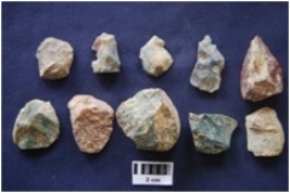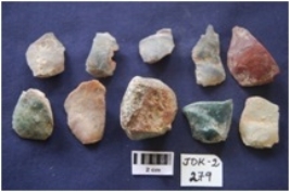| Description / विवरण | Flakes, core fragments and nodules, byproduct of stone tool manufacturing on Chalcedony and Chert. |