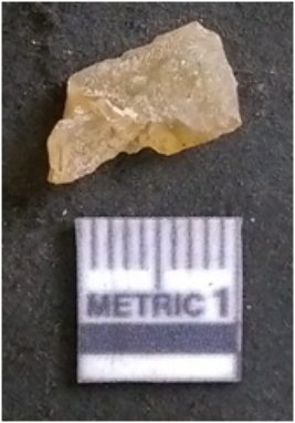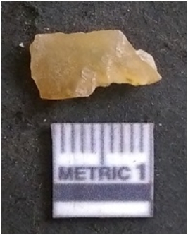 | Description / विवरण | The chalcedony flake is pale in colour and translucent in appearance. The piece has s harp flaked ends and a bulbous end due to flaking. The flake has a crypto-crystalline silica matrix. |