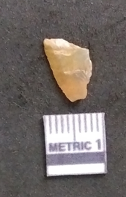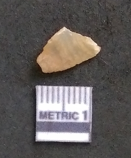 | Description / विवरण | It is a chalcedony flake, with a bulb of percussion on the ventral side. Cortex on one end. |