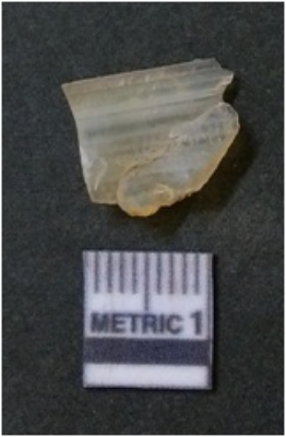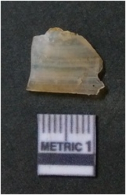 | Description / विवरण | The banded agate piece is crystalline in nature, with a smooth fracture pattern and visible bands on the flaked sides. The piece is pale in color and has sharp flaked ends. |