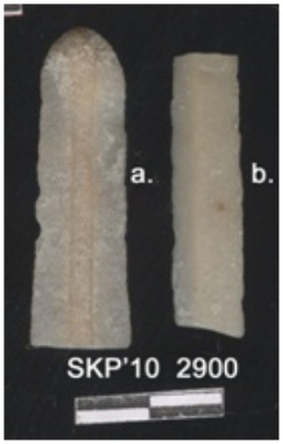 | Description / विवरण | Broken chert blade, it is rectangular in structure and are triangular in cross section. The ridges can be seen clearly. The sides are retouched. |