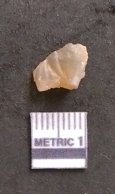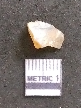 | Description / विवरण | It is a chalcedony flake, with a bulb of percussion on the ventral side. Cortex on one end. |