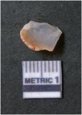 | Description / विवरण | It is chalcedony flake, translucent in appearance. The piece shows sharp pointed ends and flake scars on the surface as a result of flaking. The piece shows a bulb of percussion. |