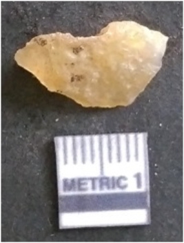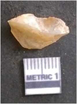 | Description / विवरण | The chalcedony flake is pale in colour and translucent in appearance. The piece has s harp flaked ends and a bulbous end due to flaking. The flake has a crypto-crystalline silica matrix. |