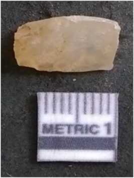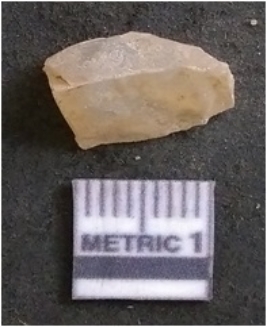 | Description / विवरण | The chalcedony flake is pale in colour and translucent in appearance. The piece has s harp flaked ends and a bulbous end due to flaking. The flake has a crypto-crystalline silica matrix. |