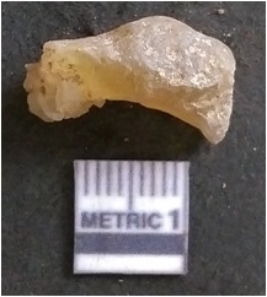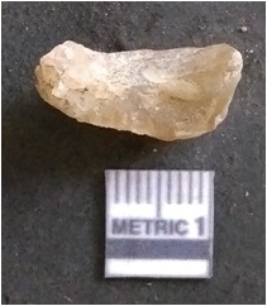 | Description / विवरण | The chalcedony flake is pale in colour and translucent in appearance. The piece has s harp flaked ends and a bulbous end due to flaking. The flake has a crypto-crystalline silica matrix. |