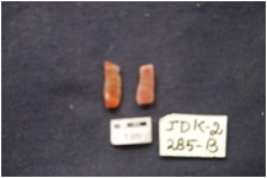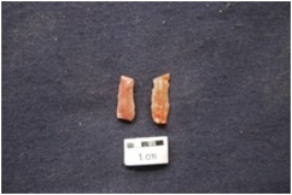 | Description / विवरण | Fragments of two Blades, made on Chert, ridge on dorsal side, prepared platform along proximal end, diffused bulb on ventral side whereas bulb absent on one, use-wear marks along one lateral edge. |