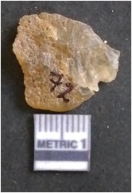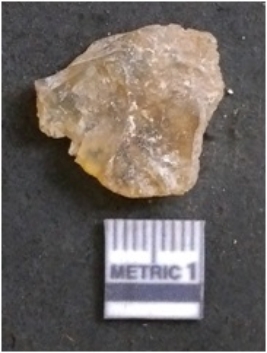 | Description / विवरण | The chalcedony flake is pale in colour and translucent in appearance. The piece has s harp flaked ends and a bulbous end due to flaking. The flake has a crypto-crystalline silica matrix. |