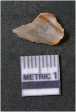 | Description / विवरण | It is chalcedony flake, translucent in appearance. The piece shows sharp pointed ends and flake scars on the surface as a result of flaking. The piece shows a bulb of percussion. |