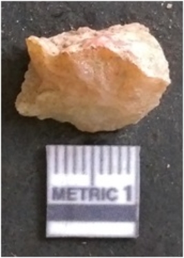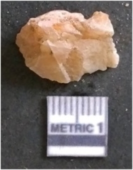 | Description / विवरण | The chalcedony flake is pale in colour and translucent in appearance. The piece has s harp flaked ends and a bulbous end due to flaking. The flake has a crypto-crystalline silica matrix. |