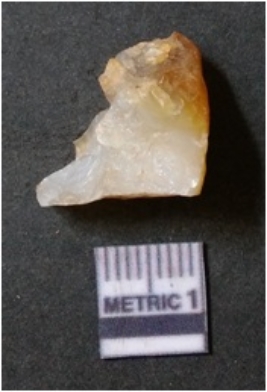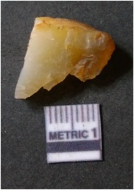| Description / विवरण | It is chalcedony flake, translucent in appearance. The piece shows sharp pointed ends and flake scars on the surface as a result of flaking. The piece shows a bulb of percussion. |
